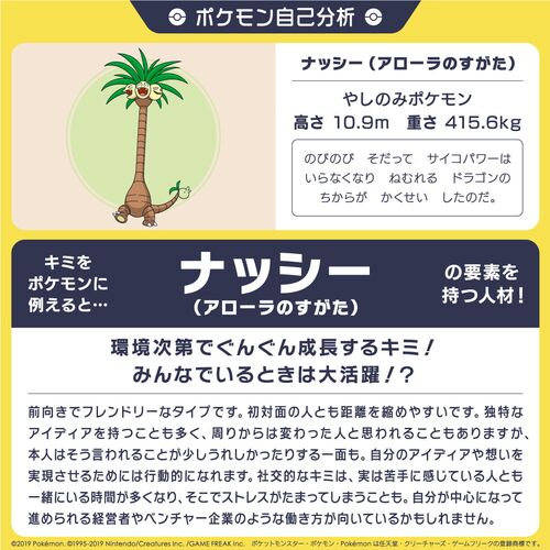 就職や転職活動で 参考になるのが自己分析ですね。 こんなのをやってみました⇊ 株式会社ポケモンセンター | 採用サイト | ポケモン自己分析 (pokemon.co.jp) ちなみに私をポケモンに例えるとコレ⇊ 結構当たっている! 「独特なアイディアを持つ」 「経営者や…